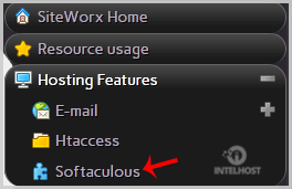 2. Under SiteWorx Menu, click the Hosting Features menu item if it is not already open.