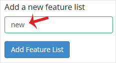 3. In Add a new feature list field, enter the name of your feature list then click on the Add Feature List button.