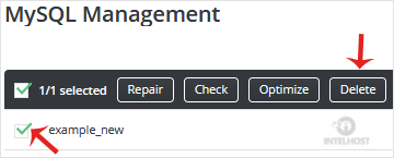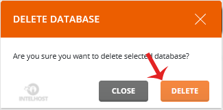4. Click the Delete button, and a new window opens, asking you for confirmation. Click again on Delete to remove the database.