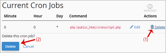 2. Under «Delete this Cron job?» text, click the Delete button.