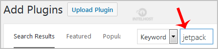 3. In the Search Plugin box, enter the name of the plugin you wish to install, such as Jetpack, and press enter.