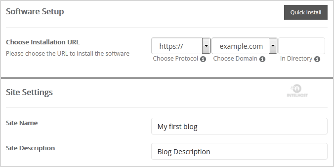 - Choose Installation URL: Choose the appropriate protocol/domain. Inside the «In Directory» field, should you want to install this in a directory, i.e., example.com/directory, enter the directory name. Otherwise, leave it blank to install in your main domain, i.e., example.com