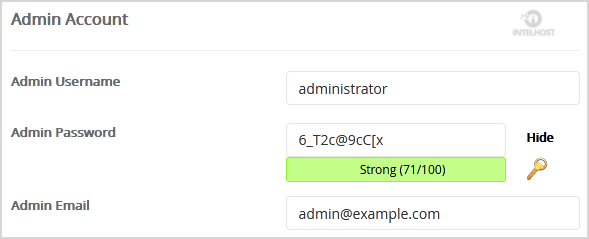 - Admin Username: Your new Anchor username (for security reason do not use the Administrator or the Admin username.)