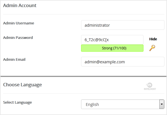 • Admin Username: Your new b2evolution username (for security reason do not use the Administrator or the Admin username.)