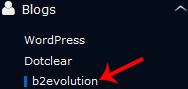 5. On the left side of your screen, you should locate the Blogs category. Click on it and then click on the b2evolution link that will appear.