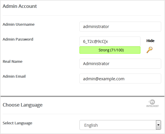 9. Under the Admin Account field, enter the following information: