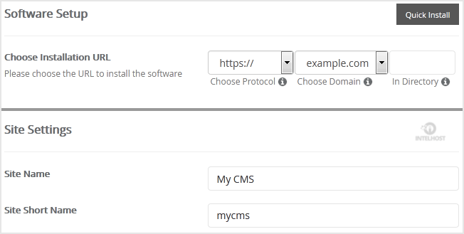 • Choose Installation URL: Choose the appropriate protocol/domain. Inside the «In Directory» field, should you want to install this in a directory, i.e. example.com/directory, enter the directory name? Otherwise, leave it blank to install in your main domain, i.e. example.com