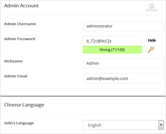 • Admin Username: Your new PivotX username (for security reason do not use the Administrator or the Admin username.)