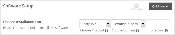 • Choose Installation URL: Choose the appropriate protocol/domain. Inside the «In Directory» field, should you want to install this in a directory, i.e., example.com/directory, enter the directory name. Otherwise, leave it blank to install in your main domain, i.e., example.com