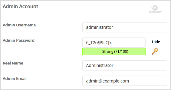 7. Under the Admin Account field, enter the following information:
