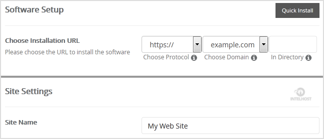 - Choose Installation URL: Choose the appropriate protocol/domain. Inside the «In Directory» field, should you want to install this in a directory, i.e., example.com/directory, enter the directory name. Otherwise, leave it blank to install in your main domain, i.e., example.com
